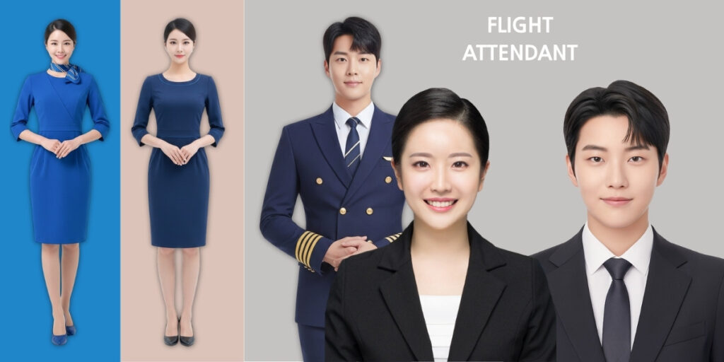 국내항공사(대한항공, 아시아나 등)는 물론 외항사(에어아시아, 카타르, 에미레이츠, 베트남, 남방항공, 동방항공, 싱가폴, 가루다 등) 각 항공사 분위기에 적합한 메이크업 및 헤어스타일링 가능, 전문가가 스튜디오에 항상 있습니다.