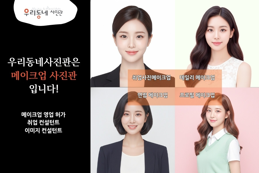 사진을 위한 메이크업을 가장 잘 표현하는 메이크업 달라와 우리동네사진관은 같은 매장 내에 함께 운영되고 있습니다.
